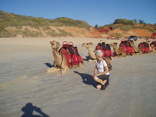 Day 3 travelled around Broome and out to Cable Beach - an eight mile beach where the sun sets into the Indian Ocean. Camel rides in the afternoon and at sunset are a big tourist money spinner. I phoned my friend Kath,y while watching the sun set, to pass on Llonda's regards.